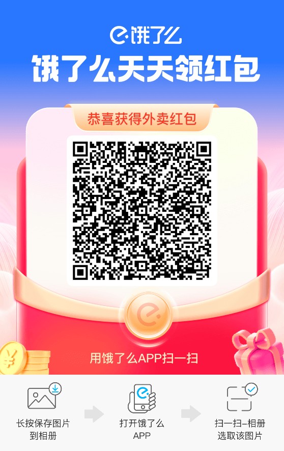 打开饿了么app扫码领取↓